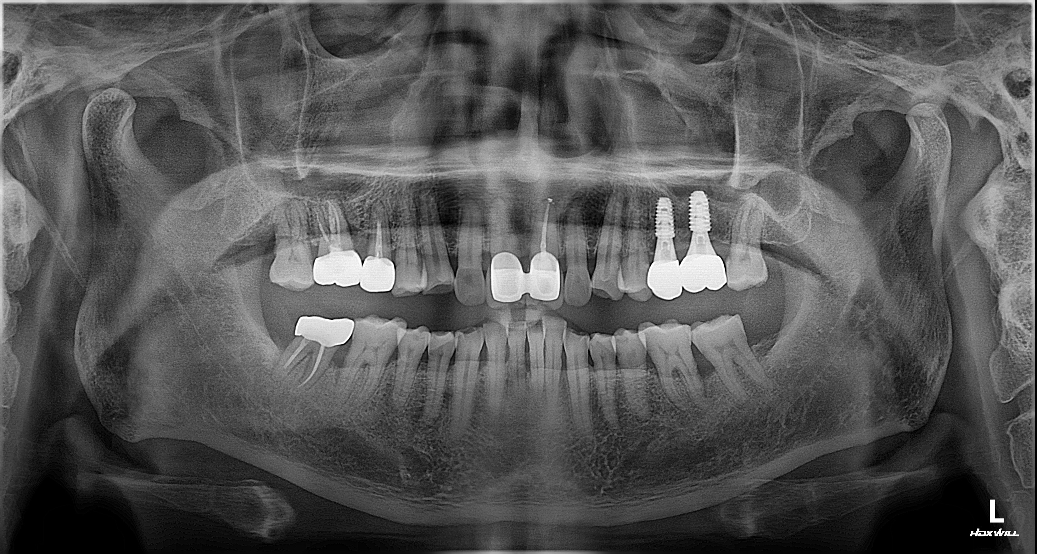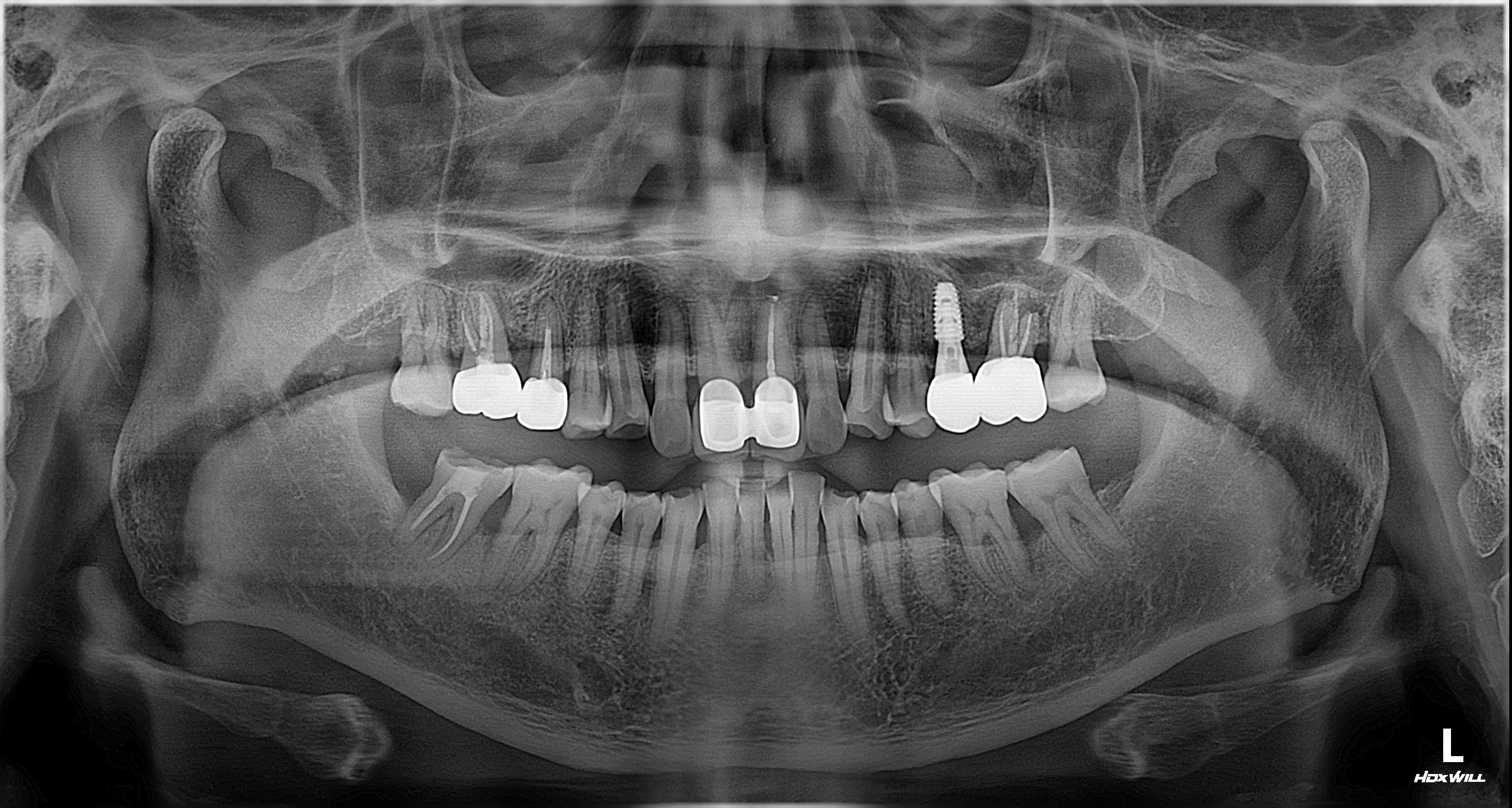 2026년 3월 18일, 최종 보철물까지 모두 체결되어 치료가 종료된 후의 방사선 사진입니다.
