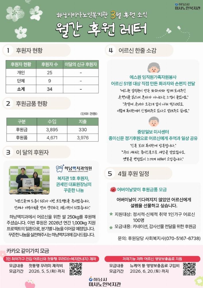 | 하남시미사노인복지관 '이달의 후원자' 선정 작성일 | 2026.04.07 작성자 | 관리자 |